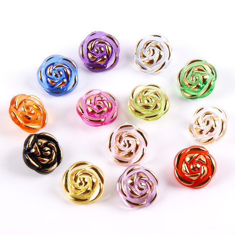 เสื้อสเวตเตอร์กระดุมก้านพลาสติกประดับมุกดอกไม้สีทอง18/21/25มม. งานตัดเย็บเสื้อผ้าสำหรับผู้หญิง