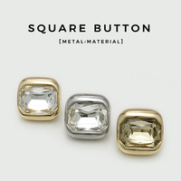 Venta al por mayor botones cuadrados de cristal y metal, suéteres decorativos dorados, botones para abrigos, trajes, chaquetas